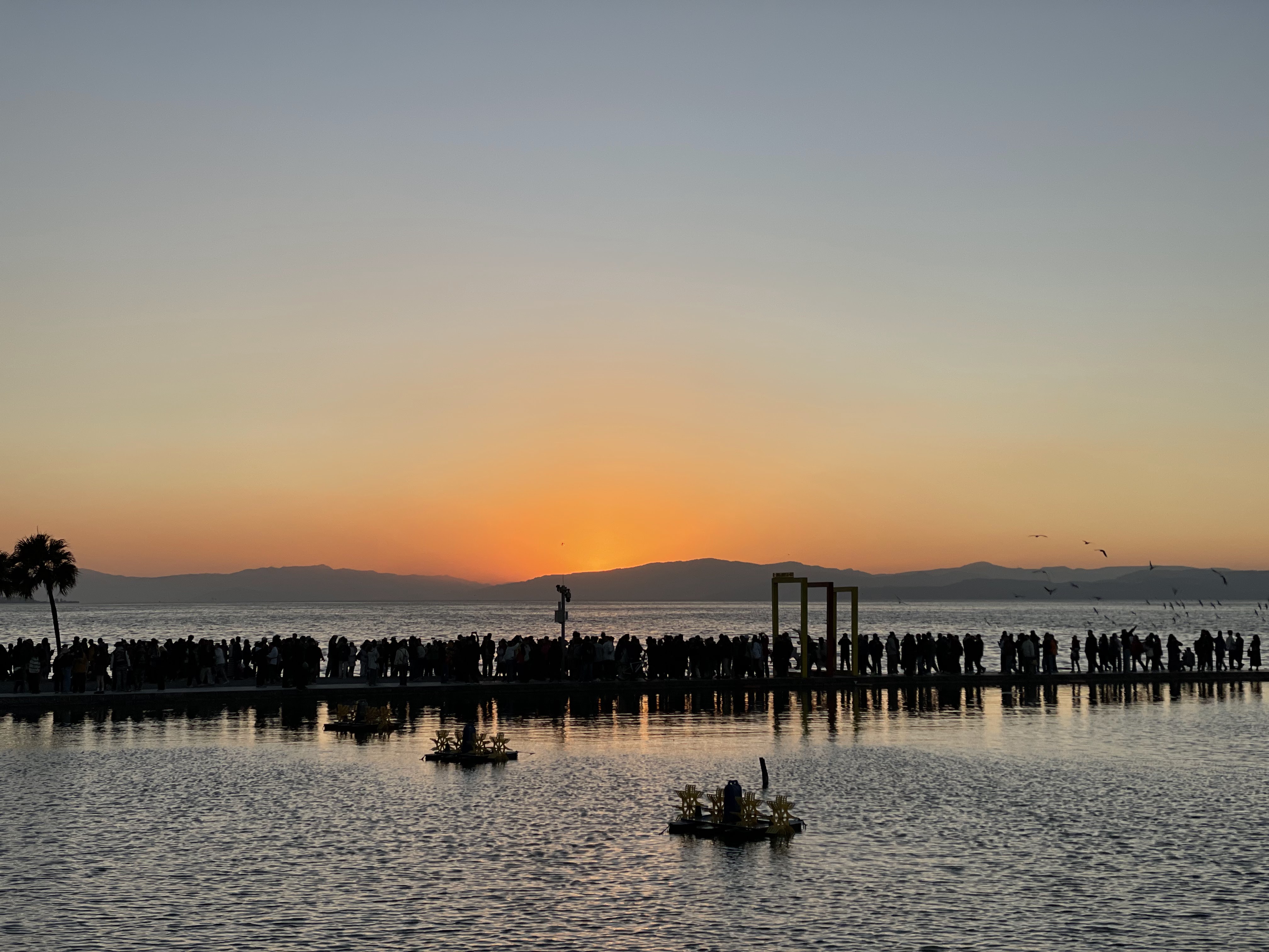하이옌촌의 방파제는 독특하게 'L자 형태'를 띠고 있습니다. 이러한 구조적 특징 덕분에, 방파제 끝으로 걸어가면 마치 지면을 떠나 호수 한가운데 서 있는 듯한 시점을 확보할 수 있습니다. 시야를 가리는 장애물 없이, 정면으로 떨어지는 태양을 온전히 관찰할 수 있는 최적의 포인트입니다.