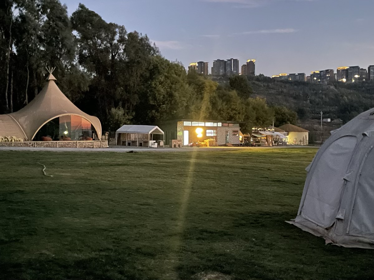 어두운 길을 조금 해매며 헤쳐 나가다보니 어두운 텐트들 사이로 따뜻한 조명이 새어 나오는 글램핑장(Point H)이 나타났습니다.